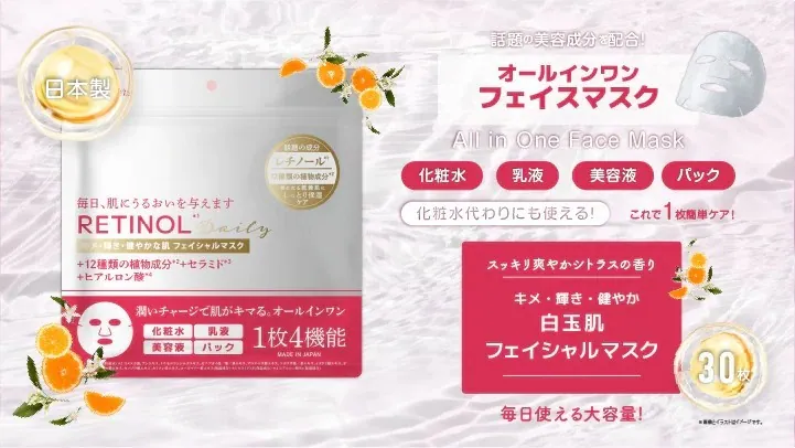 ⏰13/12 日本DEVIL BEAUTY 視黃醇多效合一面膜30枚入 (團購約3月初到港)