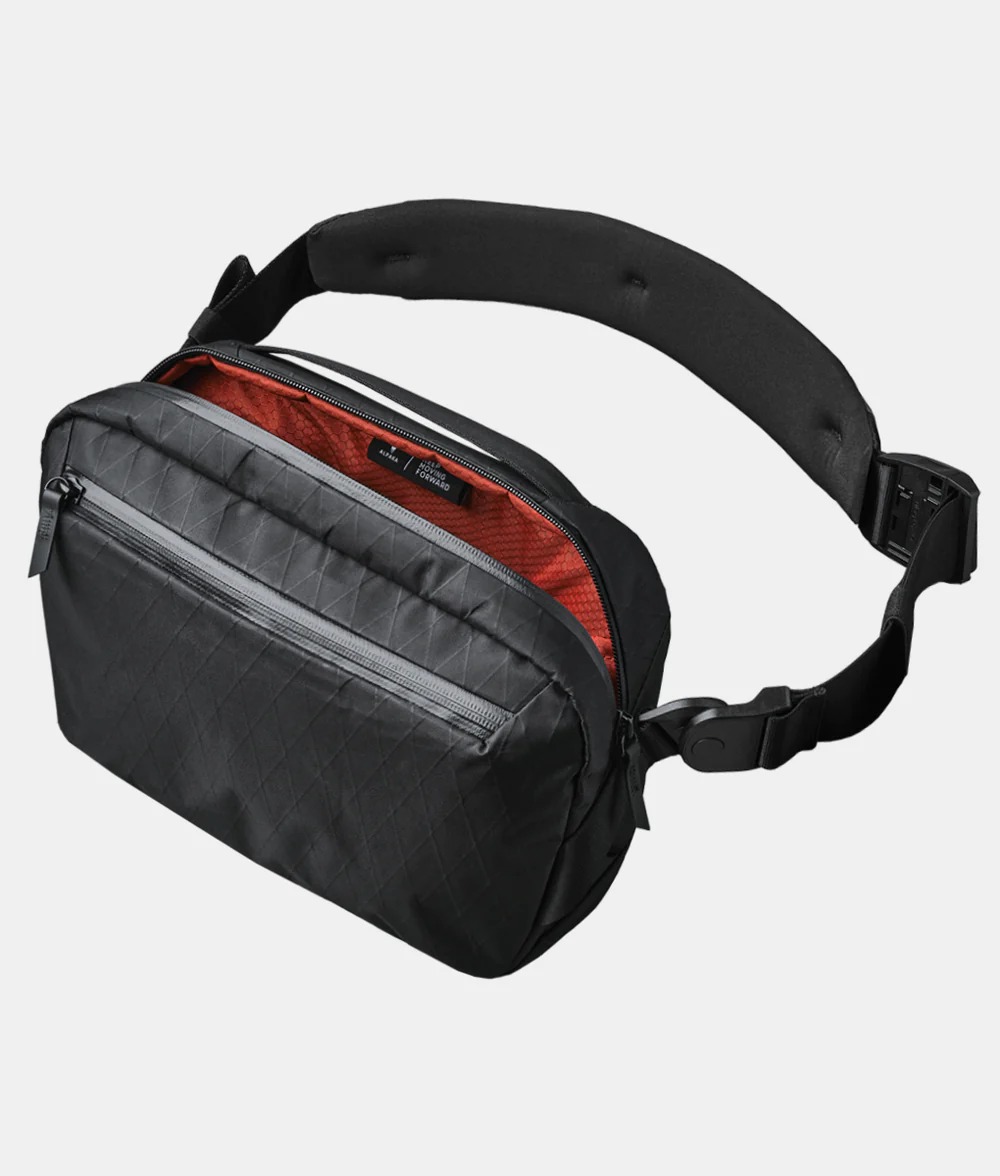 Go Sling 採用全襯墊設計,配有防水 YKK 靜音拉鍊,可保持您的必需品乾燥,並防止雨水和意外濺水。