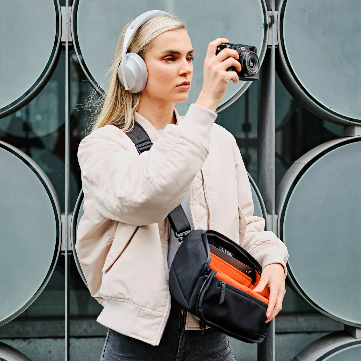 我們知道舒適是關鍵,尤其是當您在旅途中時。因此,Vertex Pouch 提供令人興奮的軟墊肩帶,而皮帶上的快速釋放磁力扣環,讓您在攜帶 Vertex Pouch 時可以輕鬆拎著。根據您的喜好進行調整,讓您的裝備始終在您身邊,無憂無慮的享受旅行。Vertex 手袋採用兩種優質面料製成