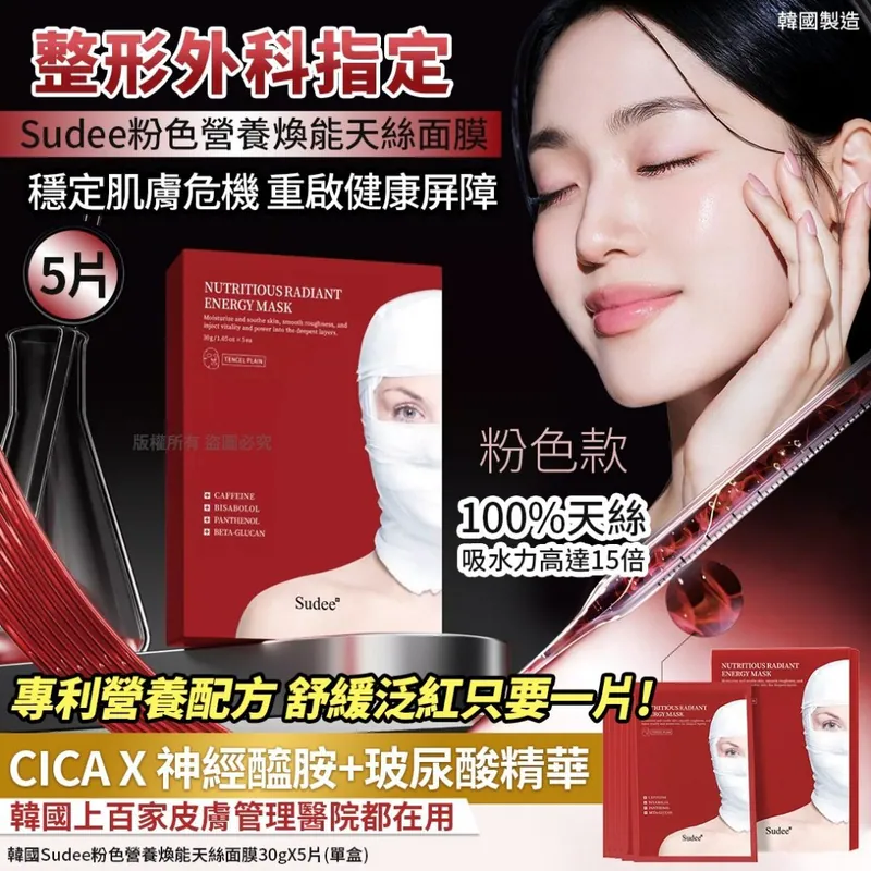 ⏰17/11韓國Sudee粉色營養煥能天絲面膜30gX5片(單盒) (團購約3月初到港)