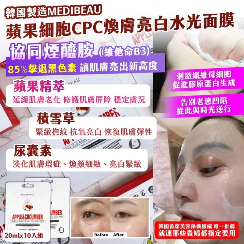 ⏰25/10 韓國製造 MEDIBEAU 蘋果細胞CPC煥膚亮白水光面膜 (團購約1月中到港)