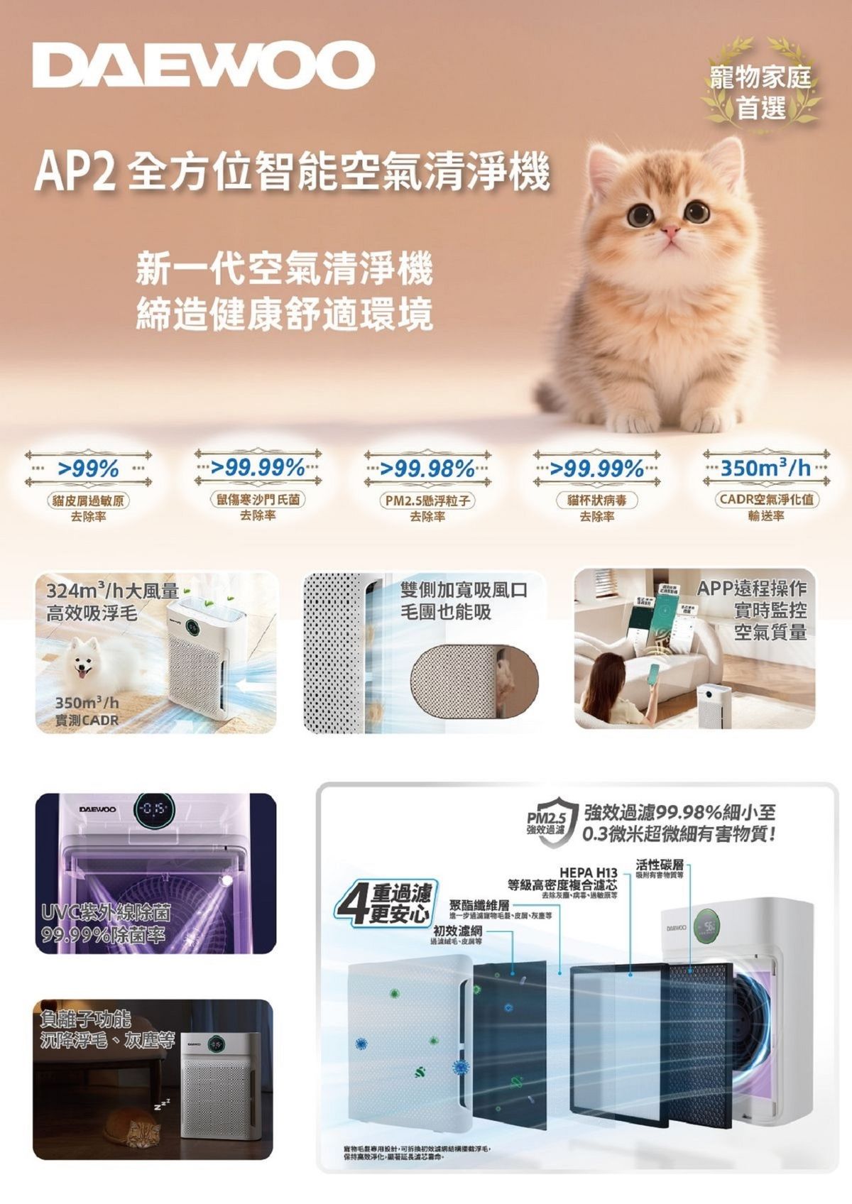- 產品名稱:DAEWOO全方位智能空氣清淨機